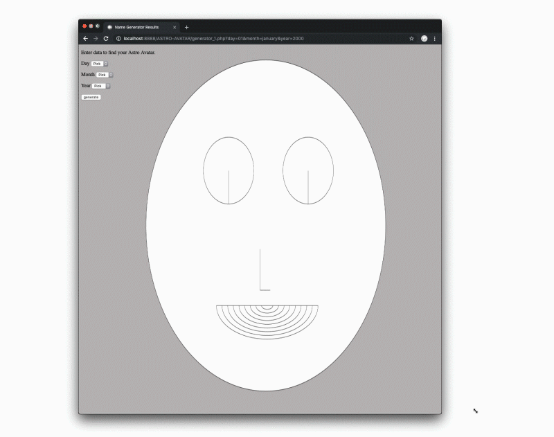 Astro Avatar – digital avatar generator using birth date where day/month/year equals iris/nose/mouth.